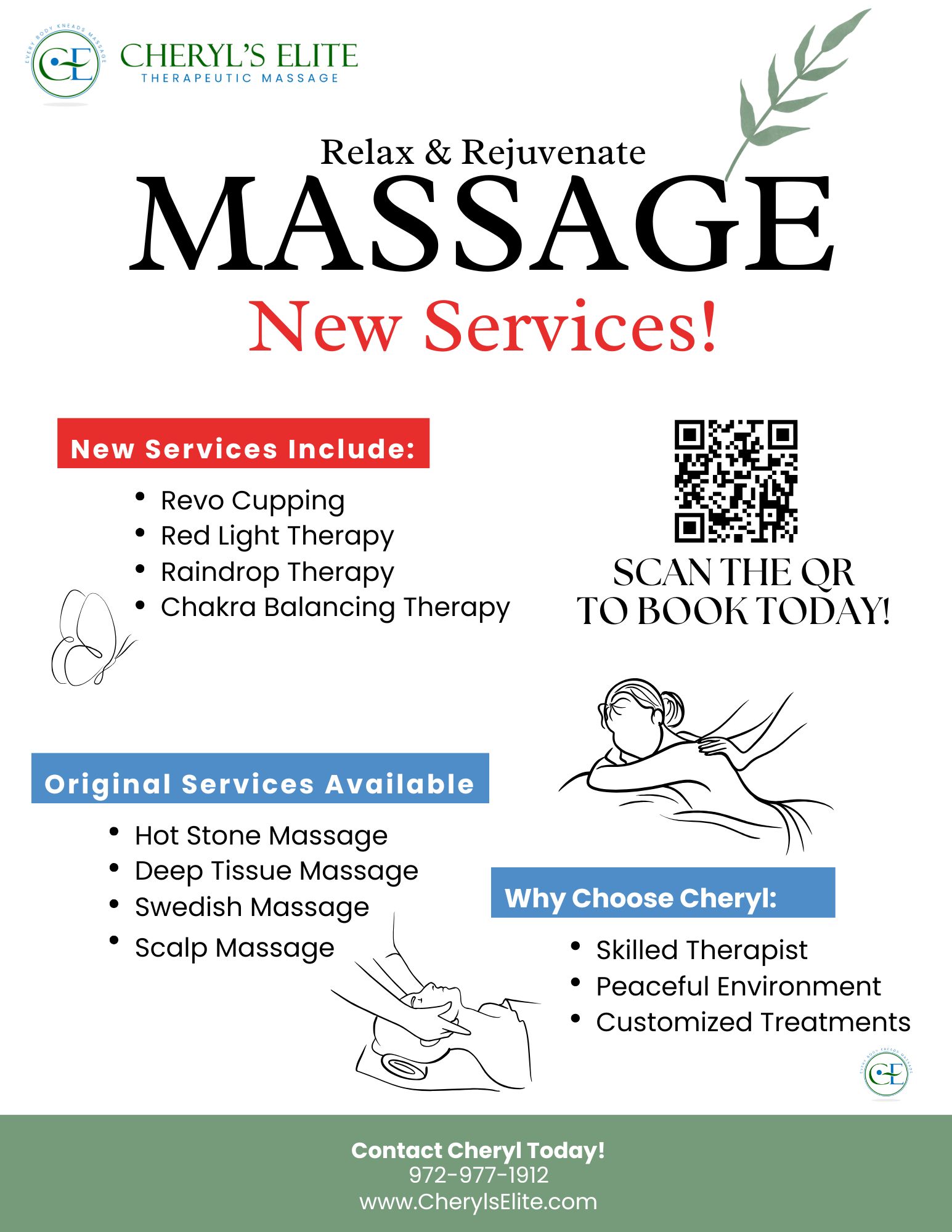 I've struggled with chronic neck pain for years, and Cheryl's Deep Tissue Relief massage truly made a difference—gentle yet effective. I feel so much looser and more relaxed!
